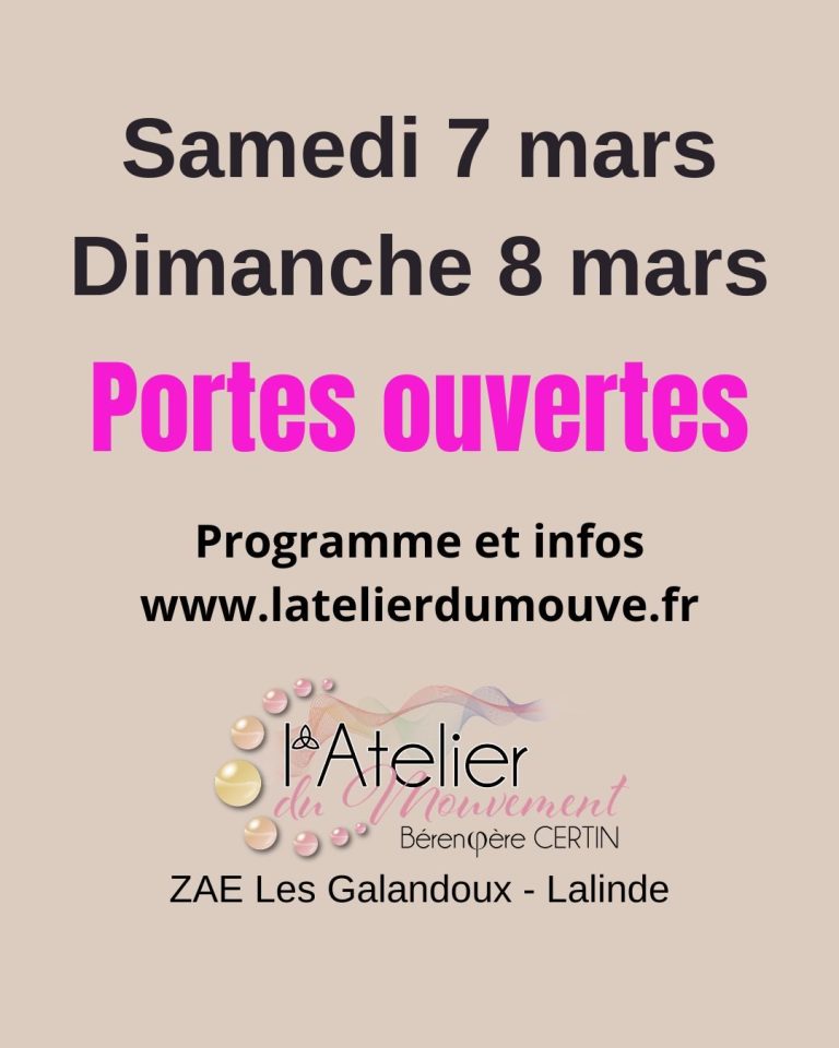 - PORTES OUVERTES SAMEDI 7 MARS de 10h à 12h et de 14h à 17h. DIMANCHE 8 MARS de 09h30 à 12h. Cours gratuits sur réservation : infos ici